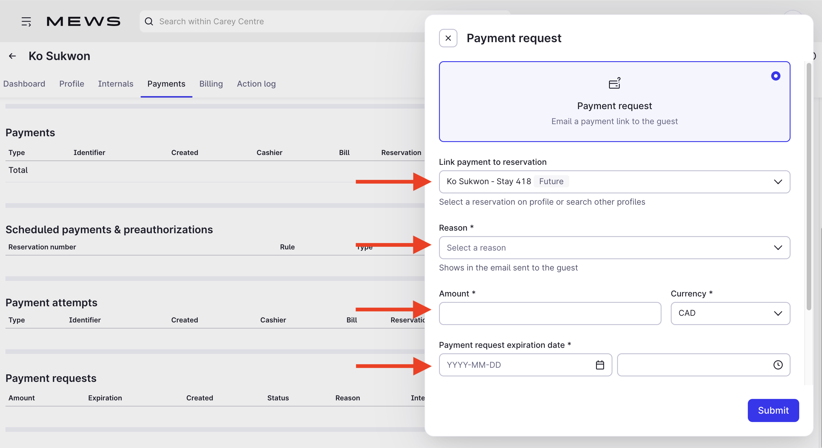 (Make sure the guest has an email registered to their profile on Mews. You may click their name to view their profile.)